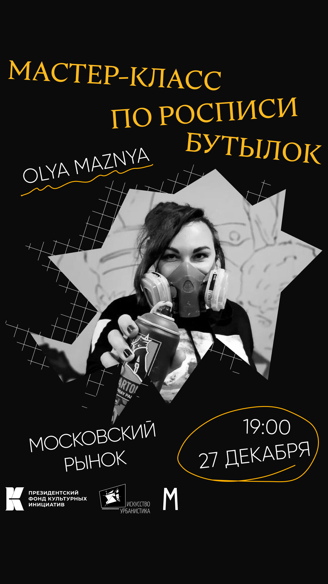 На мастер-классе по росписи вы сможете создать своё стрит-арт послание и собственный тэг. Художница Оля Мазня покажет, как при помощи баллонов, маркеров и авторских трафаретов превратить обычные стеклянные бутылки в арт-объекты. Готовые объекты можно будет забрать домой в качестве украшения в интерьер.
